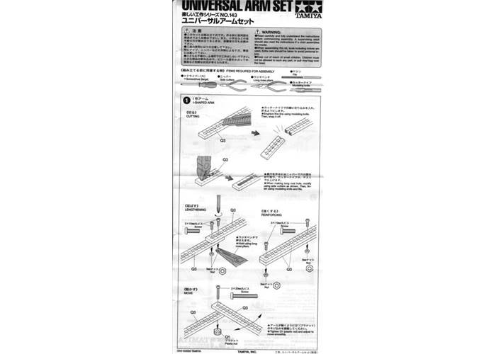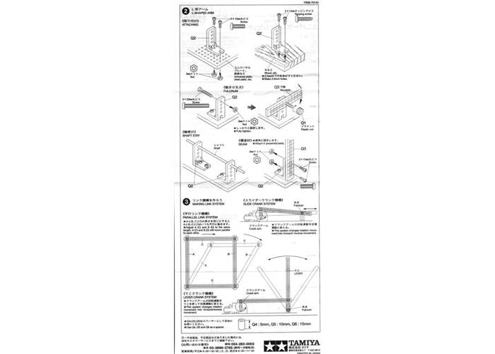 The Tamiya 70143 Universal Arm Set can be used to create crank systems, link systems, and structures for your robot or other project, as illustrated at the bottom of the instructions shown here.