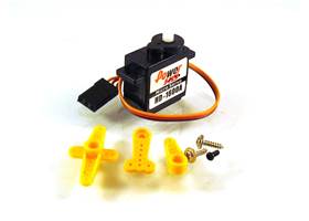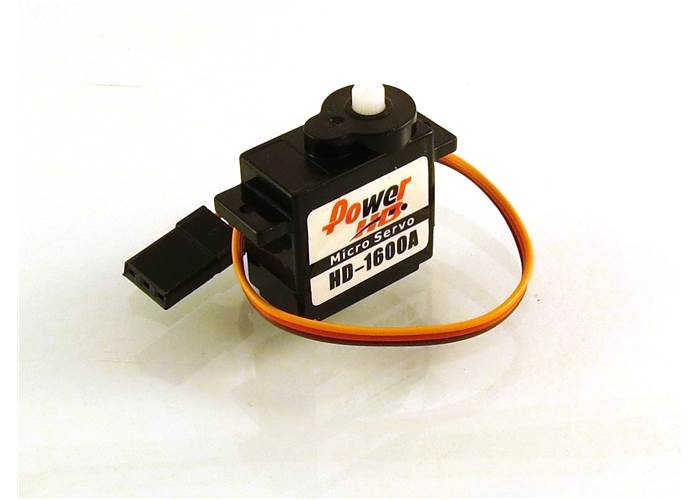 The HD-1600A analog servo from Power HD is a great general-purpose micro servo at a great price. Servo horns and associated hardware are included. Key specs at 6 V: 0.10 sec/60°, 17 oz-in (1.2 kg-cm), 6.0 g.