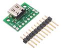 This board breaks out the USB-C connector’s VBUS, GND, CC1, CC2, D+, and D- pins intro a 0.1" pitch header while providing up to a nominal 1.5A of power and up to 3A depending on the upstream device.