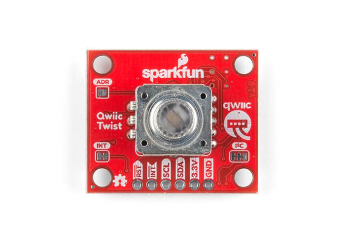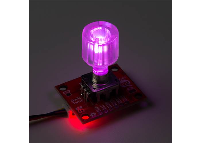 We designed Qwiic Twist with an indent encoder which gives the user a great 'clicky' feel. Additionally, the encoder has a built in button so the user can select an GUI menu or element by pressing down on the it. The Qwiic Twist uses a 6mm shaft and works great with our Clear Plastic Knob listed in the Hookup Accessories below or any other 6mm knob.