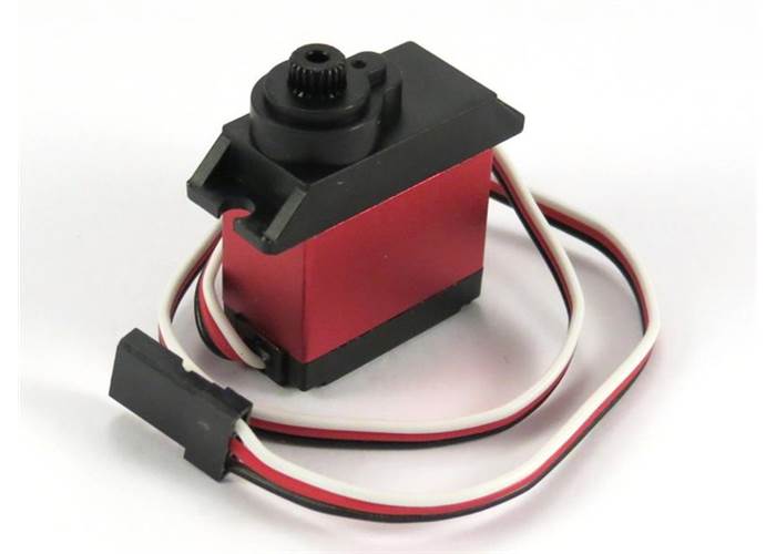 The HD-1810MG is a great, high-performance actuator for small mechanisms. Digital electronics coupled with mostly metal gears and a ball bearing give this servo a distinct edge over similarly sized servos. The lead is terminated with a standard “JR”-style connector, which is Futaba-compatible.