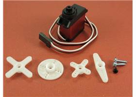 The HD-1810MG digital servo from Power HD is a miniature servo with digital control electronics for increased performance. The output shaft is supported by a ball bearing, and the gear train and part of the case are metal for increased durability. Servo horns and associated hardware are included. Key specs at 6 V: 0.13 sec/60°, 54 oz-in (3.9 kg-cm), 16 g.