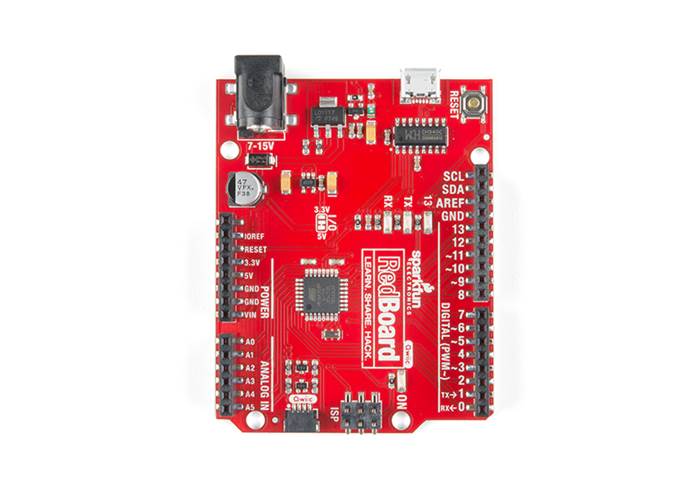 The SparkFun RedBoard Qwiic can be programmed over a USB Micro-B cable using the Arduino IDE: Just plug in the board, select "Arduino UNO" from the board menu and you're ready to upload code. RedBoard Qwiic has all of the hardware peripherals you know and love: 20 Digital I/O pins with 6 PWM pins, UART, SPI and external interrupts. We've also broken out the SDA, SCL and IOREF pins that showed up on the UNO R3, so the RedBoard Qwiic will be compatible with future shields (if you choose to use them). You can power the SparkFun RedBoard Qwiic over USB or through the barrel jack. The on-board power regulator can handle anything from 7 to 15VDC. Check out the related items below for a compatible wall-wart power supply.