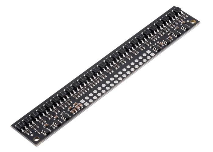 These reflectance sensors feature a linear array of infrared emitter/phototransistor pair modules in a high-density (4 mm pitch) or medium-density (8 mm pitch) arrangement, which makes them well suited for applications that require detection of changes in reflectivity. This change in reflectivity can be due to a colour change at a fixed distance, such as when sensing a black line on a white background, as well as due to a change in the distance to or presence of an object in front of the sensor. A variety of sensor counts and densities is available so you can pick the ideal arrangement for your application. Since the outputs are all independent, you can connect just some of the channels to attain an irregular or non-standard sensor spacing.