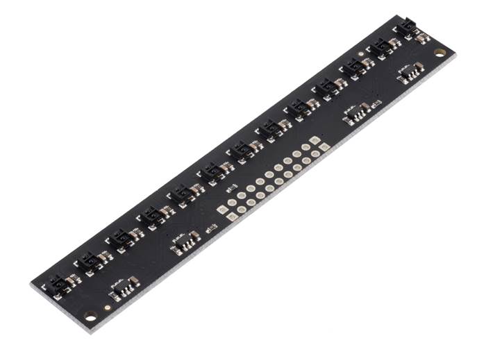 These reflectance sensors feature a linear array of infrared emitter/phototransistor pair modules in a high-density (4 mm pitch) or medium-density (8 mm pitch) arrangement, which makes them well suited for applications that require detection of changes in reflectivity. This change in reflectivity can be due to a colour change at a fixed distance, such as when sensing a black line on a white background, as well as due to a change in the distance to or presence of an object in front of the sensor. A variety of sensor counts and densities is available so you can pick the ideal arrangement for your application. Since the outputs are all independent, you can connect just some of the channels to attain an irregular or non-standard sensor spacing.