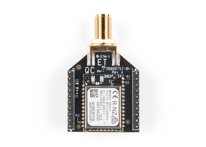 This module has the familiar XBee package while sporting a connector to add an RP-SMA antenna (not an SMA antenna). You also get a built in microcontroller so you can also configure and program the modules using MicroPython as well as Digi's XCTU software. With a HCS08 CPU running at up to 50.33MHz, 15x digital I/O pins, and 4x 10-bit ADC pins these modules can even hold their own as a microcontroller.