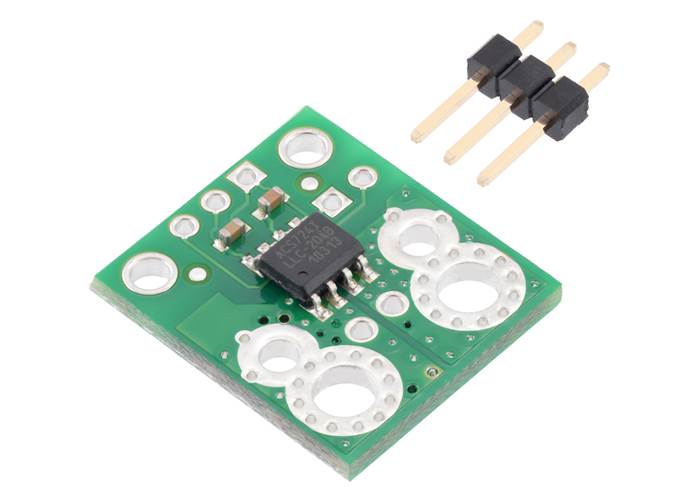 This board is a simple compact carrier of Allegro’s ACS724LLCTR-20AB Hall effect-based, electrically isolated current sensor, which offers a low-resistance (~1.2 mΩ) current path and a high 120 kHz bandwidth for fast response times.