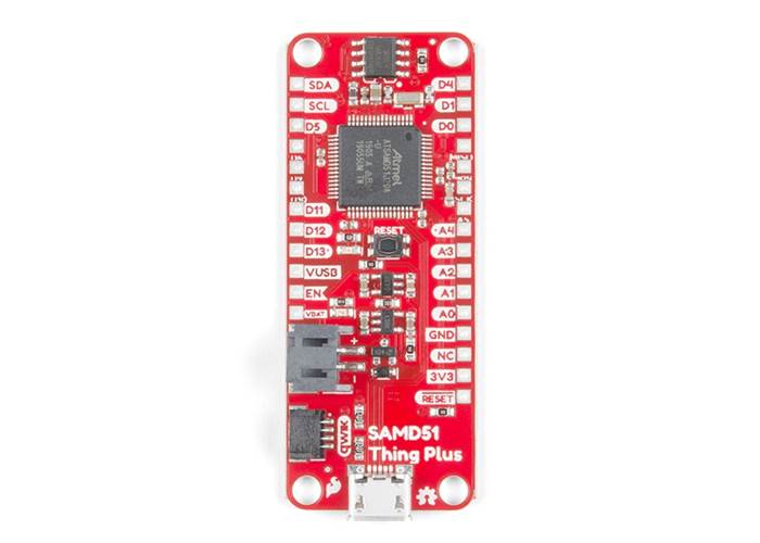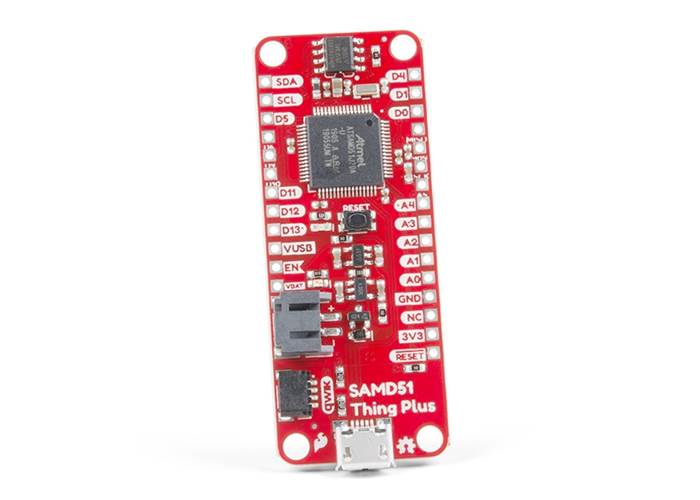Is it power you seek? With a 32-bit ARM Cortex-M4F MCU, the SparkFun SAMD51 Thing Plus is one of our most powerful microcontroller boards yet! The SAMD51 Thing Plus provides you with an economical and easy to use development platform if you're needing more power with minimal working space. This Thing even comes flashed with the same convenient UF2 bootloader as the RedBoard Turbo. To make the Thing Plus even easier to use, we've moved a few pins around to make the board Feather compatible and it utilizes our handy Qwiic Connect System which means no soldering or shields are required to connect it to the rest of your system!