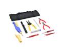 The Pro Tech Toolkit has all the tools you would need for fixing most problems with electronics short of soldering/desoldering components. The folding bag makes for an ideal, space conscious tool set you can carry with you regularly. Tools such as spudgers and tweezers make dealing with small connectors and removing parts like screens much less complicated. The well-thought-out nature of the kit is apparent in the layout of the kit in it's "rolling" organiser and inclusion of a set of "consumable" tools designed to break before your device does. The rest of the tool set is incredibly durable and designed to provide solid grip when using them.
