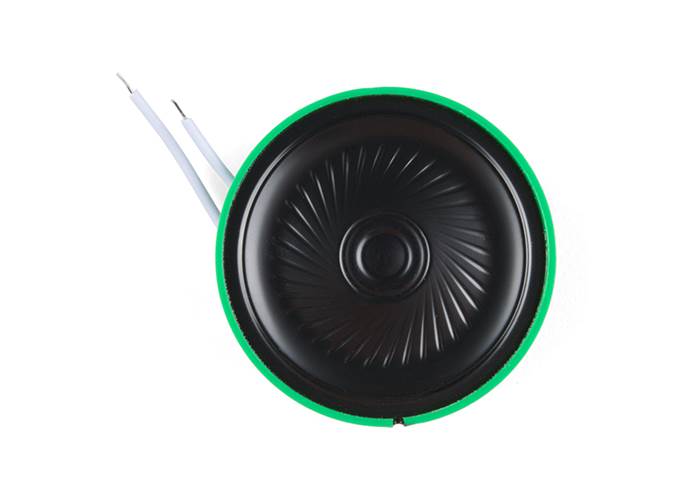 If you want to get some sound out of your project but have a tight space budget, this is a good way to do it. This 0.5W, 8Ohm speaker is only 40mm in diameter and just over 4mm thick, the same kind you might find in one of those "talking greeting cards".