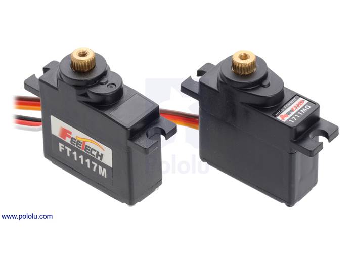 The FT1117M is a lower-cost alternative to the 1711MG from Power HD, which has nearly identical dimensions and similar performance. The two servos should be generally interchangeable for most applications. The picture below shows both the FT1117M and the 1711MG side by side: