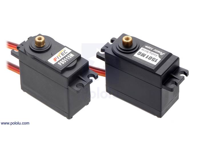 The FS5115M is a lower-cost alternative to the 1501MG from Power HD, which has nearly identical dimensions and similar performance. The two servos should be generally interchangeable for most applications. The picture below shows both the FS5115M and the 1501MG side by side:
