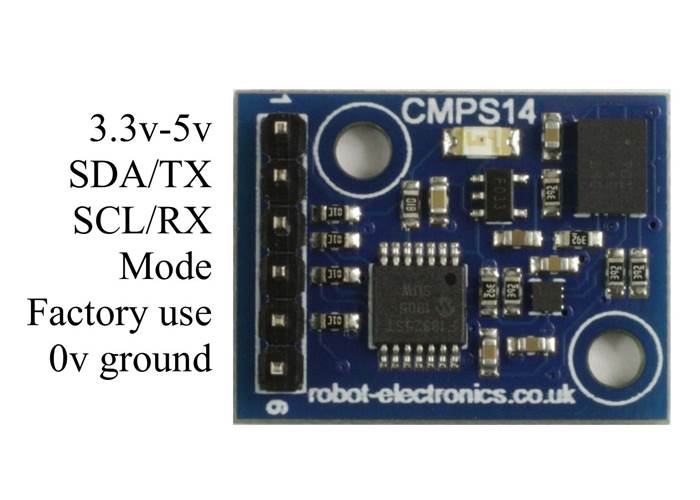 Examples of using the CMPS14 module with a wide range of popular controllers. The CMPS14 module requires a power supply at 3.3 - 5v and draws a nominal 18mA of current. There are two ways of getting the bearing from the module. A serial interface or an I2C interface