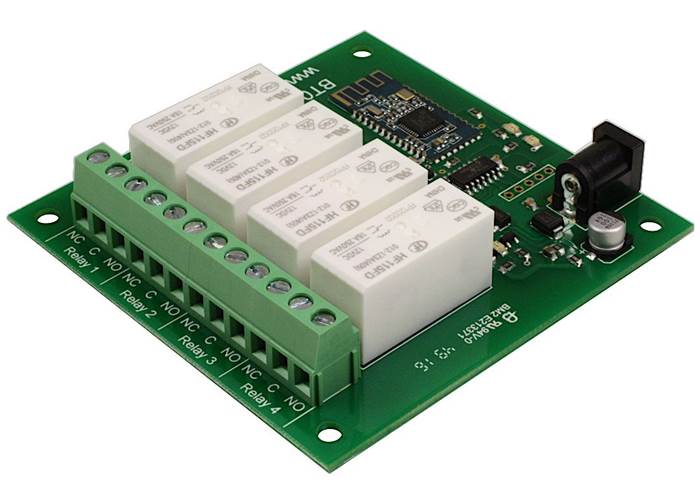 The "BT004BLE" allows you to control 4, 16 Amp relays over an Bluetooth connection using a built in web page or via simple TCP/IP based commands. Screw terminals on normally open, normally closed and common relay pins allow for easy connection. The BT004BLE is ideal for connection to Android or IOS devices, however we recommend the BT004 for Windows PC devices.
