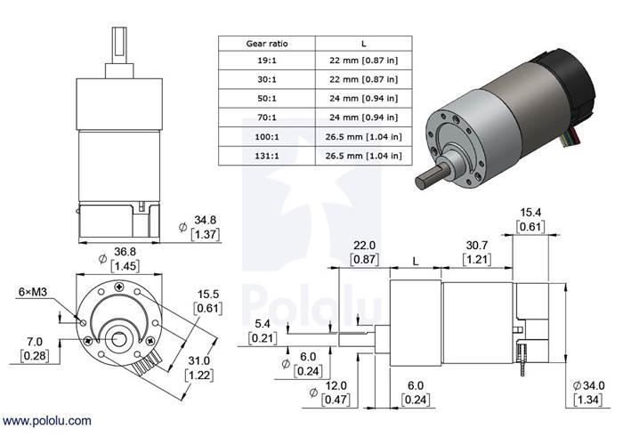 37D mm gearmotor (without encoder) with L-bracket and 6mm universal mounting hub. (2) (2)