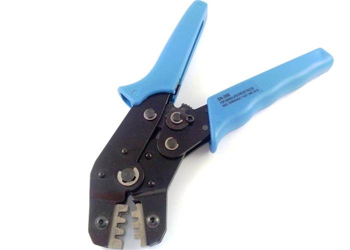 Crimping Tool for crimping our crimp pins for JST style 0.1" housings onto 16-28 AWG wires. The tool has a ratchet action for consistent results and ease of use.