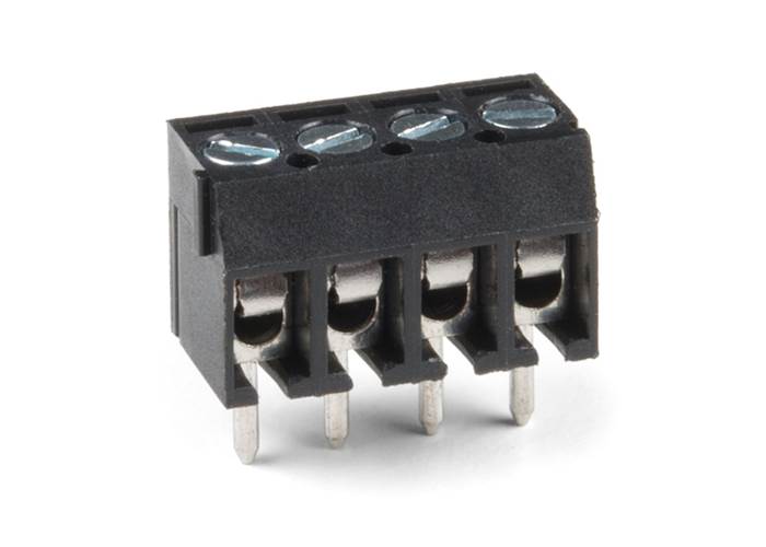 Screw Terminal 3.5mm pitch pins with slide-locking together to form any size you need. Rated up to 125V @ 6A, and can accept 30 to 20AWG wire.