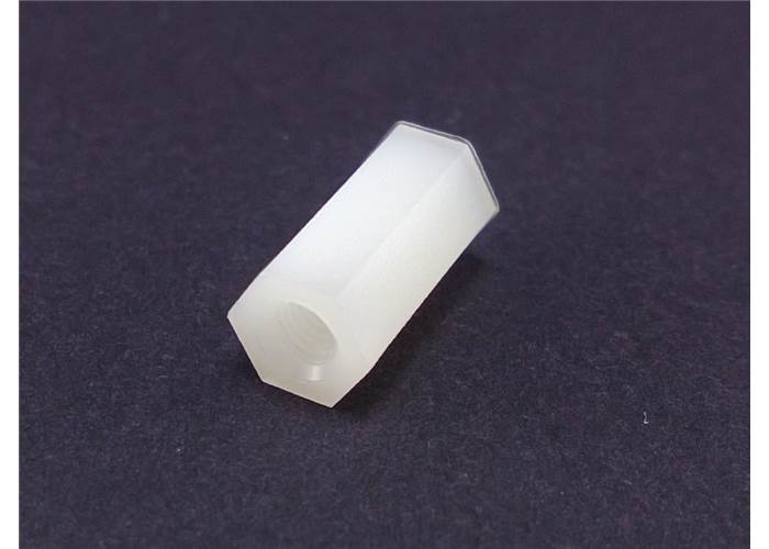 These Nylon hexagonal female-female standoffs keep parts spaced 12mm apart and are great for securing microcontrollers and other boards to robot chassis. The stand-offs have M3 tapped holes at both ends and the hexagonal shape makes it easy to hold them when securing with standard M3 screws.