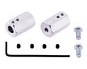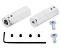 • Wheels and hubs: The 6 mm diameter gearbox output shaft works with the Pololu universal aluminium mounting hub for 6mm shafts, which can be used to mount our larger Pololu wheels (80mm- and 90mm-diameter) or custom wheels and mechanisms to the gearmotor’s output shaft as shown in the left picture below. Alternatively, you could use our 6mm scooter wheel adaptor to mount many common scooter, skateboard, and inline skate wheels to the gearmotor’s output shaft as shown in the right picture below: