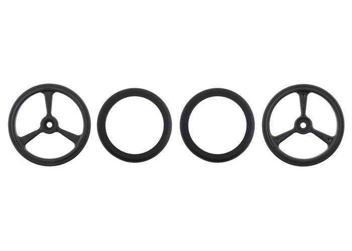 The included silicone tires, which feature horizontal treads for improved traction, are also available separately.