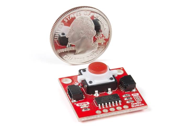 The SparkFun Qwiic Button with red LED simplifies all of those nasty worries away into an easy to use I2C device, no soldering is required.