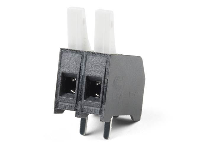 You'll have no need for a screwdriver with this terminal! This is a 2-pin Latch Terminal with 5mm pitch pins. Each pin is rated up to 250V @ 11A and will line up well with the standard 0.19" spacing. Please note that the pins are thick enough (1.20mm OD) that you may need to increase the hole diameter on some boards. Each of the terminals can accept 18-22AWG wire.