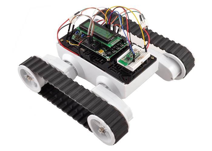 This expansion plate for the Rover 5 tracked chassis is made of 1/8" (3mm) acrylic. The numerous 3 mm wide slots give you the flexibility to mount components in a variety of orientations almost anywhere on the plate.
