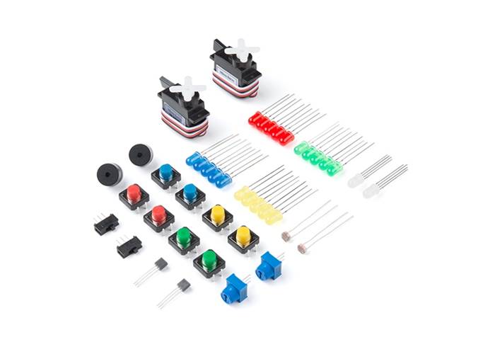 This pack targets the most common, wear-prone, and easily-lost parts from our Inventor's Kit. Inside the included protective carrying case, you'll find the components that see the most action or are hardest to find in a messy bin, including servos, simple sensors, a fresh supply of multicolored buttons and LEDs, and more!