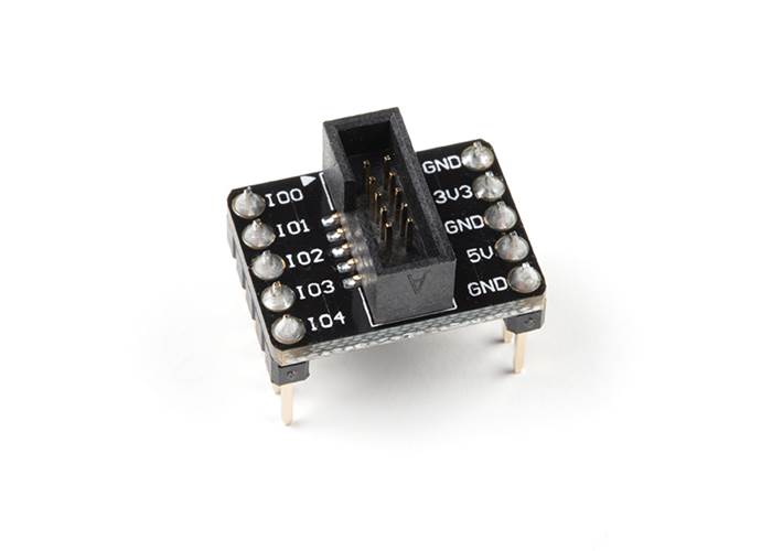 The Binho Nova Multi-Protocol USB Host Adaptor features 5 signal pins, one x 3v3 pin, one x VUSB pin, and three x GND pins on its 10pin wire harness. The wire harness terminates with a female 1.27mm 2x5 IDC connector. In IO Mode, the five signal pins can be used for varying functions such as Digital Input, Digital Output, PWM Output, Digital Interrupt (on rising edge, falling edge, or change), Analogue Input, or Analogue Output.