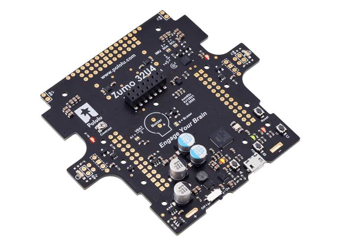 Two micro metal gearmotors and four AA batteries are also required to complete the Zumo 32U4 robot.