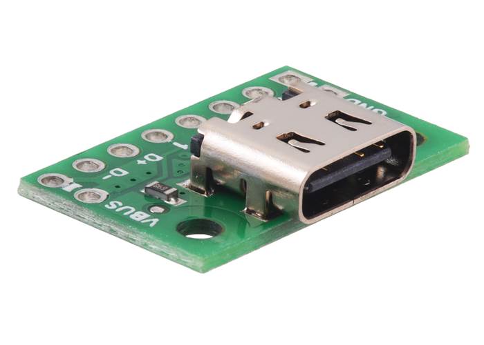 This simple board breaks out the power, USB 2.0 data, configuration, and sideband pins of a USB Type-C connector to a 0.1″ spacing that is compatible with standard perfboards, solderless breadboards, and 0.1″ connectors.