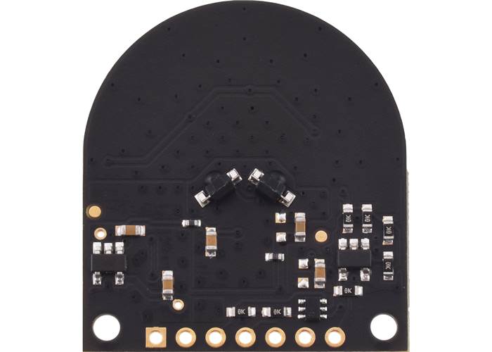 This board has three channels that each cover approximately 50° to 60°, giving the sensor a wide field of view (FOV). In favorable conditions, the sensor can measure objects at distances up to 1 m. Distance measurements are available through the sensor’s I²C interface, which is also used to configure the sensor.