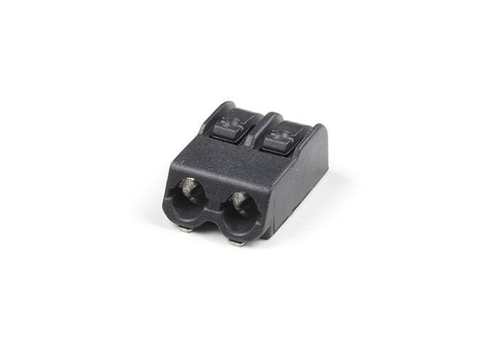 Poke Home Connectors have been featured on a number of our boards over the last few years by providing a simple screw-terminal-type connector for easy wire connection purposes. Similar to screw terminals, Poke Home Connectors grasp a wire entered into the receiving area of the pin-out by pressing down on the small plastic strip at the end of the housing. Doing so raises the internal clamp and, upon release of the button secures the wire in place without any soldering required.