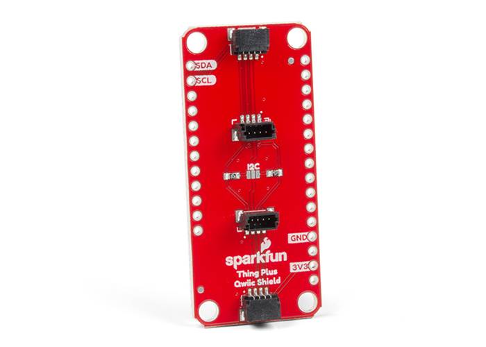 The SparkFun Qwiic Shield for Thing Plus provides you with a quick and easy way to enter into SparkFun's Qwiic ecosystem with your Thing Plus or Feather boards.