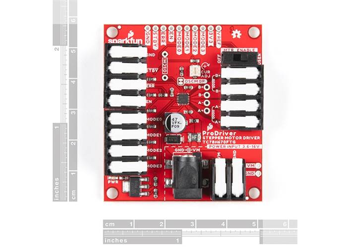 The SparkFun ProDriver makes it easy to start developing with the TC78H670FTG bipolar stepper motor driver from Toshiba! Latch terminals provide instant solder-less connections to every feature offered. Use our extensive Arduino Library with 10 examples, and you can quickly explore the many features of this precise and small package size motor driver IC.