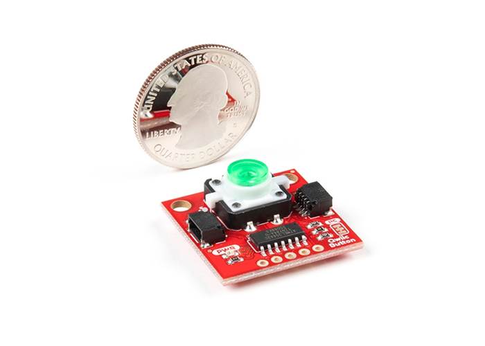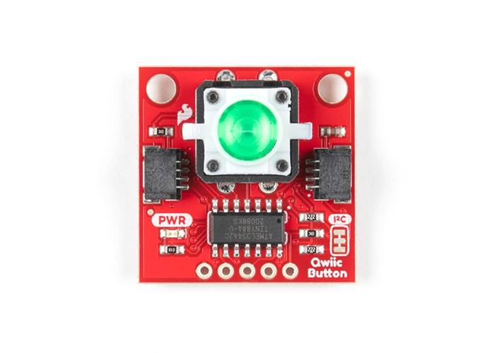 The SparkFun Qwiic Button with green LED simplifies all of those nasty worries away into an easy to use I2C device, no soldering is required.