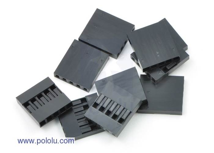 These five-pin housings work with our crimp pins to let you quickly make custom cables that mate with various 0.1"-spaced connectors, including male or female headers and solderless breadboards. They are sold in packs of 25.
