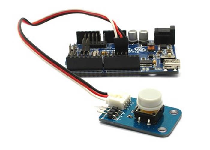 This button module includes current limiting resistors so you can easily add a button to a microcontroller without fiddling around. It comes complete with a cable and a second 3 pin 2.54mm header for easy attachment. 35L x24W x15H mm