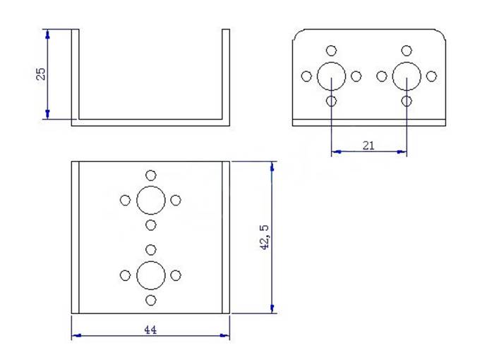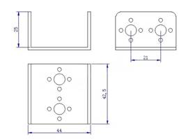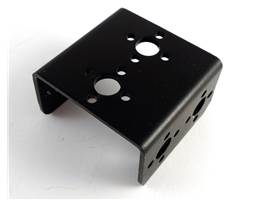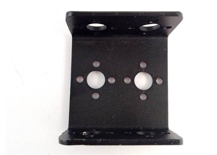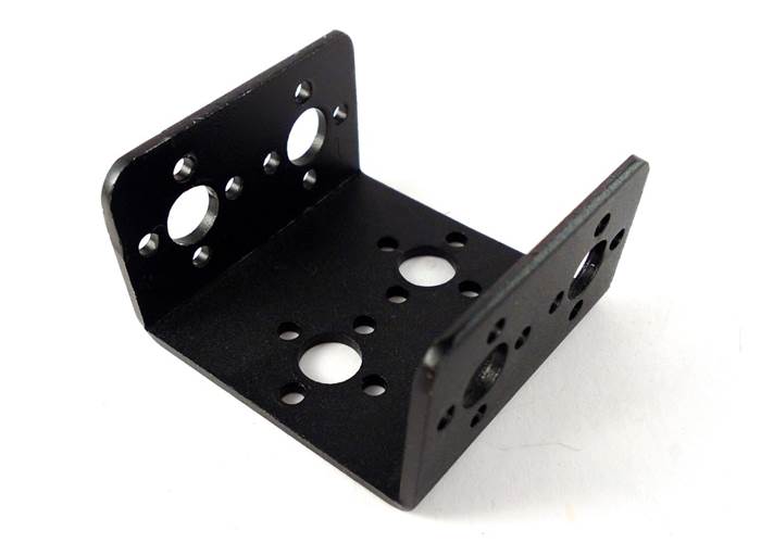 Short U-channel bracket is designed to fit most standard sized servos. Made from black anodised 6061 aluminium the bracket is both lightweight and strong. Various holes are located on the bracket that fit most servo horns.