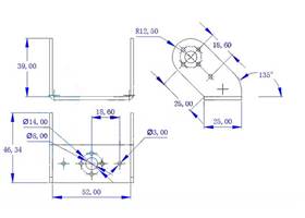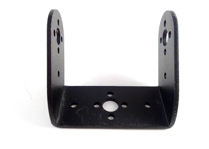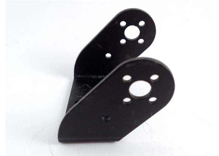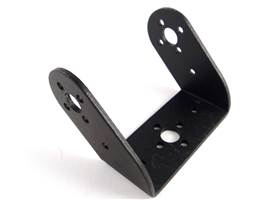 This offset arm bracket is designed to fit most standard sized servos. Made from black anodised 6061 aluminium the bracket is both lightweight and strong. Various holes are located on the bracket that fit most servo horns.