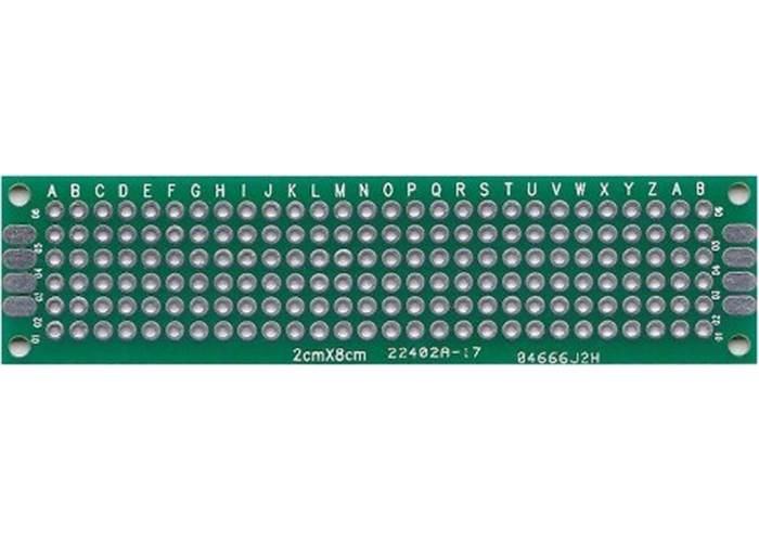Ideal for a more permanent project this double sided prototype board has plated through holes. RoHs approved (lead free).
