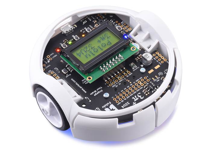 The original version of the 3pi+ 32U4 (which uses this control board) includes an 8×2 character LCD, while the newer 3pi+ 32U4 OLED incorporates a graphical OLED display instead. The name “3pi+ 32U4” can generally be used to refer to both the original (LCD) and OLED versions, and the documentation in our updated user’s guide covers both versions.