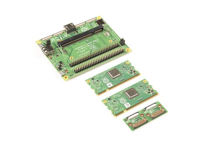 The kit includes the Compute Module IO (CMIO) board, which is a simple, open-source breakout board into which you can plug a Compute Module. The board hosts 120 GPIO pins, an HDMI port, a USB port, two camera ports, and two display ports.