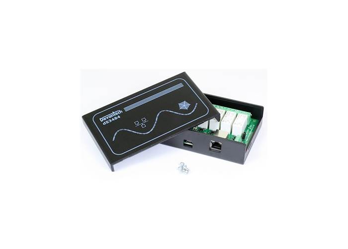 Case for the ds3484 Ethernet relay module. Includes cut-outs for cables, mounting holes and precision snap together case with screws.