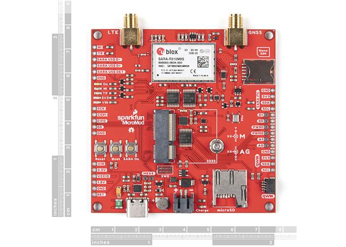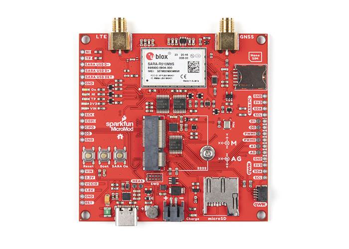 The SparkFun MicroMod Asset Tracker Carrier Board provides you with a toolkit to monitor and track the location of your assets. Built around the u-blox SARA-R510M8S module, the asset tracker offers Secure Cloud LTE-M and NB-IoT data communication for multi-regional use and has an integrated u-blox M8 GNSS receiver for accurate positioning information. The SARA-R5 supports many different forms of data communication from full TCP/IP sockets and packet switched data, through HTTP Get/Put/Post, FTP (the SARA has a built-in file system), Ping, to good old SMS text messaging!