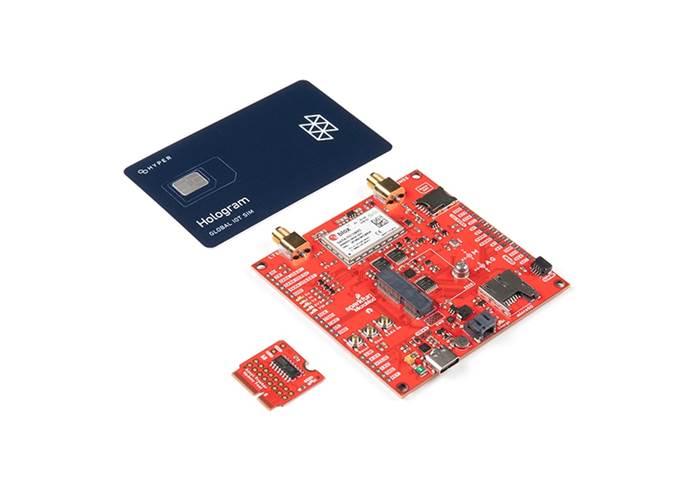 The SparkFun Asset Tracker Carrier Board has a built-in micro-SD card socket for data logging as well as a SIM card port and included SIM card. Power options include both USB-C and LiPo battery (with built-in charging and battery fuel gauge), but you can provide power via a breakout pin too.