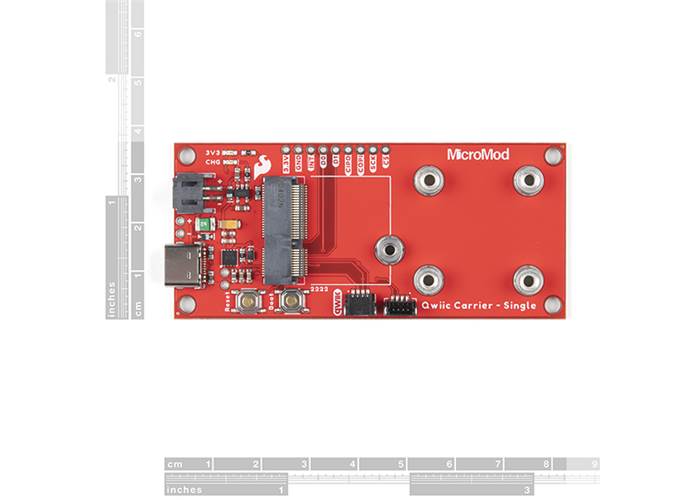 The MicroMod Qwiic Carrier Board can be used to rapidly prototype with other Qwiic devices. The MicroMod M.2 socket provides users the freedom to experiment with any processor board in the MicroMod ecosystem.