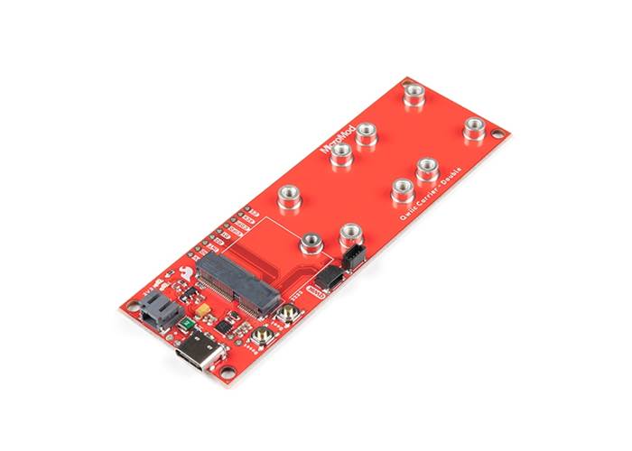 The MicroMod Qwiic Carrier Board can be used to rapidly prototype with other Qwiic devices. The MicroMod M.2 socket provides users the freedom to experiment with any processor board in the MicroMod ecosystem. This board also features two Qwiic connectors and eight 4-40 screw inserts to connect and mount Qwiic devices.