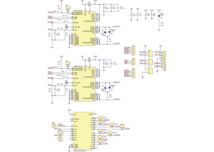 Schematic diagram for the Pololu dual VNH5019 motor driver shield .