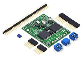 This motor driver shield and its corresponding Arduino library make it easy to control two bidirectional, high-power, brushed DC motors with an Arduino or compatible board, such as the A-Star 32U4 Prime. The board features a pair of robust VNH5019 motor drivers from ST., which operate from 5.5 to 24 V and can deliver a continuous 12 A (30 A peak) per channel, and incorporates most of the components of the typical application diagram on page 14 of the VNH5019 datasheet (1MB pdf), including pull-up and protection resistors and FETs for reverse battery protection. It ships fully populated with its SMD components, including the two VNH5019 ICs, as shown in the picture to the right; stackable Arduino headers and terminal blocks for connecting motors and motor power are included but are not soldered in (see the Included Hardware section below).